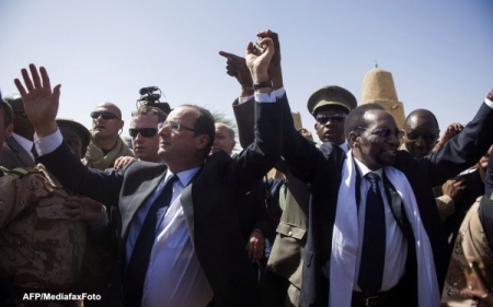 Pentru a sărbători victoria armatei franceze şi a sprijini instaurarea regimului democratic în Mali, preşedintele francez , Francois Hollande, a efectuat o vizită pe continentul african , la Tombouctou.